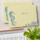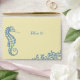 Seaside on the beach fun striped citrus yellow and blue playful unique wedding invitation return address personalized envelopes featuring hand drawn starfish and ocean corals, and a chic whimsical handwritten calligraphy script. +++++++ All colors are editable. +++++++++ Suitable for casual trendy beach coastal summer destination weddings.