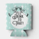 Retro beer cooler in a vintage blue hue with stars and a vivid black font text with a pair of hands toasting with glasses clinking. Cool beverage cozies for parties and BBQs.