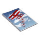 Vintage biplane art reminiscent of the twenties, thirties, forties, retro art. Formation flight of biplanes in the bright blue sky.
