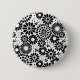 Retro Black and White Chic Folk Flowers Pattern Pinback Button