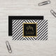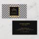 A faux metallic gold framed black box containing a stylish initial monogram with your name or business name really stands out on this optical black and white patterned business card. Stylish and elegant. © 1201AM CREATIVE