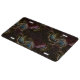 Atomic swirl, 50s space age, mid century modern retro pattern. Black with purple, blue, yellow color swirls.