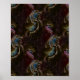 Atomic swirl, 50s space age, mid century modern retro pattern. Black with purple, blue, yellow color swirls.