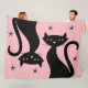 Black cats with black stars with a baby boomer pink background reminiscent of the 1950s.