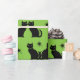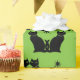 Black cats in retro styling sit in different poses. This design adds a green background with star accent. Bright green eye catching.