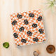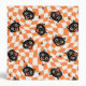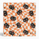 This vintage-inspired pattern features charming black cat faces with large, wide eyes and open mouths, giving them an expression of surprise or excitement. The cats are set against a vibrant, retro orange and cream checkered background with a wavy, distorted effect, evoking a sense of playful movement. Small black stars are scattered throughout the design, adding an extra element of whimsy and nostalgia. The combination of the classic Halloween colors and the bold, stylized cat faces creates a fun, slightly spooky aesthetic that harkens back to mid-century vintage design.