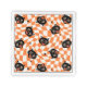 This vintage-inspired pattern features charming black cat faces with large, wide eyes and open mouths, giving them an expression of surprise or excitement. The cats are set against a vibrant, retro orange and cream checkered background with a wavy, distorted effect, evoking a sense of playful movement. Small black stars are scattered throughout the design, adding an extra element of whimsy and nostalgia. The combination of the classic Halloween colors and the bold, stylized cat faces creates a fun, slightly spooky aesthetic that harkens back to mid-century vintage design.
