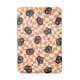This vintage-inspired pattern features charming black cat faces with large, wide eyes and open mouths, giving them an expression of surprise or excitement. The cats are set against a vibrant, retro orange and cream checkered background with a wavy, distorted effect, evoking a sense of playful movement. Small black stars are scattered throughout the design, adding an extra element of whimsy and nostalgia. The combination of the classic Halloween colors and the bold, stylized cat faces creates a fun, slightly spooky aesthetic that harkens back to mid-century vintage design.