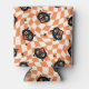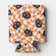 Retro Black Cat Orange Check Pattern Can Cooler
