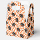 This vintage-inspired pattern features charming black cat faces with large, wide eyes and open mouths, giving them an expression of surprise or excitement. The cats are set against a vibrant, retro orange and cream checkered background with a wavy, distorted effect, evoking a sense of playful movement. Small black stars are scattered throughout the design, adding an extra element of whimsy and nostalgia. The combination of the classic Halloween colors and the bold, stylized cat faces creates a fun, slightly spooky aesthetic that harkens back to mid-century vintage design.