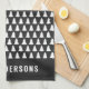 Retro Black Christmas Modern Minimal Unique personalized family holiday Kitchen towel design With modern hand drawn text and trees.