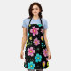Retro Black colorful Flowers Pattern Birthday part Apron