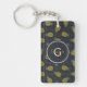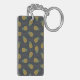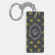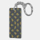 Retro black gold pineapple patterns monogram keychain