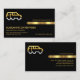 Card features an all black cover that is accentuated by a faux gold stripe near the center of the card. Just above this is the business name with a gold auto car logo you can use on the left. Below this logo lies your prestigious name, the job title and its contact details. A slogan to advertise your services is available at the lower right corner.