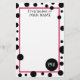 Stationery featuring black polka dots of various sizes against a white background. Hot pink trim. Retro font. All text is customizable. Add your name (Line 2) and initials (Line 3). Font size, color, style, and position may be changed using the design tool.