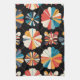 Retro Black Rainbow geometric Flowers Pattern Kitchen Towel