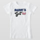 White daddy's girl tee with girl in a cute retro script, daddy's in fun blue letters, and a pink cartoon bow, matching the Girl dad tee so dad and his little girl can have matching looks on Father's day!