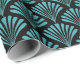 Retro black turquoise art deco fans pattern Wrapping Paper.