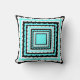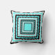 Fun throw pillow with a retro 60's design in black white and aqua. Concentric squares of colorful rick rack patterns give this pillow a 1960's psychedelic look with a modern twist using trendy colors. Make a splash in your home decor!