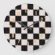 Retro Black White Checks Checkerboard Pattern Large Clock