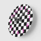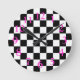 Retro Black/White/Hot Pink Checkerboard Pattern Round Clock