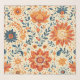 A seamless pattern of oversized retro-inspired flowers in bright orange, deep navy blue, and golden yellow, accented with leafy vines and tiny blossoms on a warm cream backdrop. The bold, painterly style adds a vintage yet lively touch, perfect for apparel, accessories, and home décor.