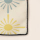Add some style to any outfit with this patterned scarf. Geometric depictions of daisies in muted shades of light blue, dark green, pink, rust orange and yellow are set against a sand or beige colored background for a simple, retro look.