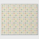 Wrap up gifts in style with this wrapping paper and its vintage style floral pattern. Geometric depictions of daisies in muted shades of light blue, dark green, pink, rust orange and yellow are set against a sand or beige colored background for a simple, retro look.