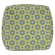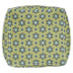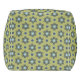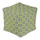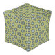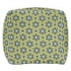 Retro Blue & Black Daisies on Green Floral Pattern Pouf