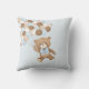 Retro Blue Brown Teddy Bear Balloons Baby Boy Throw Pillow