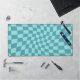 Retro psychedelic modern checkered blue hues desk mat