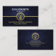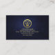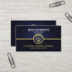 A columnar design with the upper layer in a dark blue vignette against its darker counterpart below. Both layers are demarcated by a faux gold line that runs across the face of the card. This is accentuated by a gold light bulb logo at the center. Over at the top you have your prestigious name and job title. Towards the base lies your slogan option to publicize your services and the contact number.