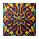Retro Blue Floral Art Deco Illustration Ceramic Tile