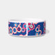 This is a heavy, durable bowl decorated with Tibbies of many colors, the perfect size for hungry/thirsty Tibs. The design is interesting and printing clear.
