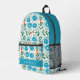 This retro and cute backpack features a white background with blue floral pattern. Personalize it for your needs. You can find matching products at my store.