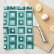 Retro Blue Geometric Squares Pattern Kitchen Towel