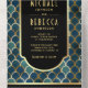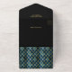 Retro Blue Gold Scales Art Deco QR Code Wedding All In One Invitation