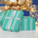 A retro style stripe pattern decorates this festive Christmas wrapping paper. The design is from original art.