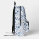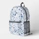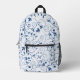 This retro style backpack features a delicate blue leaf swirl design on a white background. A pale blue shadow of the pattern gives added interest in the background. Your monogram is in matching blue script on a white circle banner at the center of the pocket.