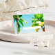Retro Blue Ocean Beach Palm Trees Tropical Wedding Place Card