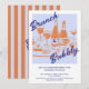 Retro blue orange “Brunch & Bubbly” Bridal Shower Invitation