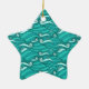 Retro blue waves doodle surf art ceramic ornament