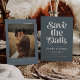 Retro and elegant save the date card featuring boho font that says "save the date" in blue color. You can add a photo on the back.
