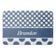 A retro blue and white polka dot name bath mat is part of the -Polka Dot Pattern Take A Dip - collection. Modify the fill color and the name to customize the birthday gift color. For help with color and design customization, contact https://t.me/KBMD3signs_chat.