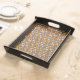 Retro Blue Yellow Brown Java Coffee Beans Pattern Serving Tray
