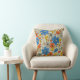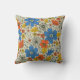 Retro Blue, Yellow & Orange Floral Throw Pillow