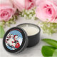 This favor candle features three cute retro-style snowmen sitting in a bobsled. View this design on other products or other products by Leslie Sigal Javorek at her Zazzle store, HoMeArts.
