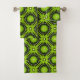 Retro Boho Lime Green Black Geometric Mandala Bath Towel Set