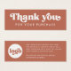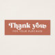 Thank you for your purchase mini insert card with the text "Thank you" in a retro style font. White (or custom color) text on a terracotta brown background. Add your own logo on the back. You can change colors, move and resize elements with the design tool.