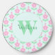Retro Boho Pink Flowers Monogram Initial Wireless Charger